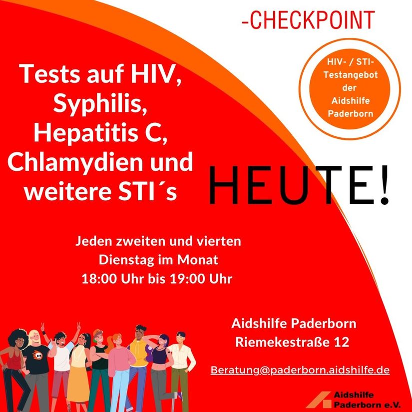 Jeden 2. und 4. Dienstag im Monat bietet die Paderborner Aidshilfe die Möglichkeit, sich auf HIV, Syphilis, Hepatitis C, Tripper, Chlamydien und weitere STIs testen zu lassen.