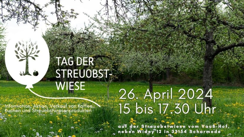Euch erwartet eine blühende Streuobstwiese, Infostände, Produkte von der Streuobstwiese, Kinderaktionen, Kaffee und Kuchen.