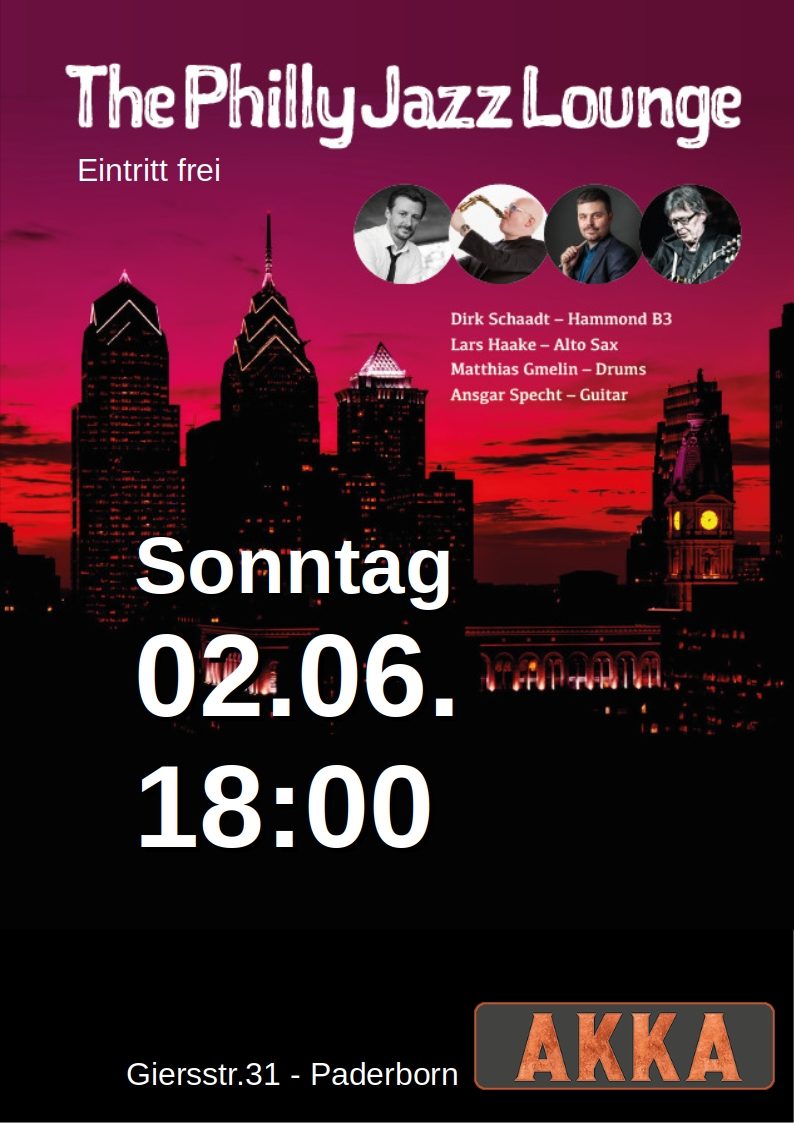Das Projekt “Philly Jazz Lounge” bringt diesen besonderen Sound nach Europa, mit dem seit vielen Jahren in New York lebenden Berklee Absolventen, Altsaxophonisten Lars Haake, dem von New York nach München heimgekehrten Schlagzeuger, Matthias Gmelin, dem studierten Kölner Ausnahmeorganisten, Dirk Schaadt und dem langjährigen Botschafter der Musik von Philadelphia’s Gitarrenstar, Pat Martino, Ansgar Specht an der Gitarre.