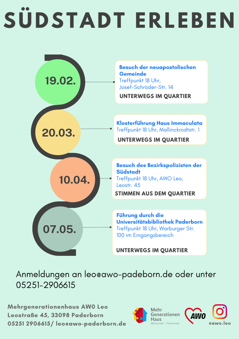 Anmeldungen bitte im Mehrgenerationenhaus "AWO Leo" unter 05251/2906615 oder per E-Mail an leoawo-paderbornde.