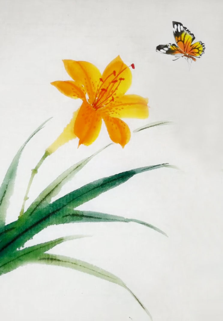 Für die Maler aller Dynastien sind Schmetterlinge seit langem eines der wichtigen gestalterischen Themen und wurden in Blumen- und Vogelgemälden dargestellt. „有花须有蝶, 花色愈增妍. Es gibt Blumen und Schmetterlinge und die Farben der Blumen werden schöner.“ Wenn Sie einen Schmetterling zeichnen und einige Blumen und Pflanzen hinzufügen, erscheint der Schmetterling besonders lebendig und auch die Blumen und Pflanzen werden besonders leuchtend sein.