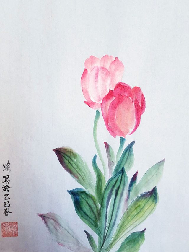 Die Chinesische Tuschemalerei ist eine spezielle Malkunst aus China. Das Thema im April “Tulpen 郁金香”.