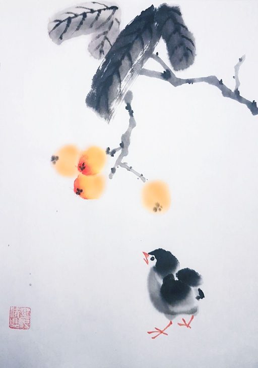Die Chinesische Tuschemalerei ist eine spezielle Malkunst aus China. Das Motiv, welches wir gemeinsam im August malen werden sind „Wollmispel und Küken 枇杷与小鸡“.