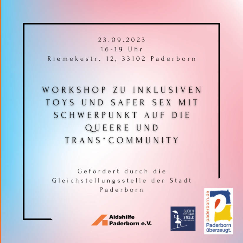 Die Aidshilfe Paderborn lädt herzlich zum Workshop zu inklusiven Toys und Safer Sex mit Schwerpunkt auf die queere und trans*Community ein.