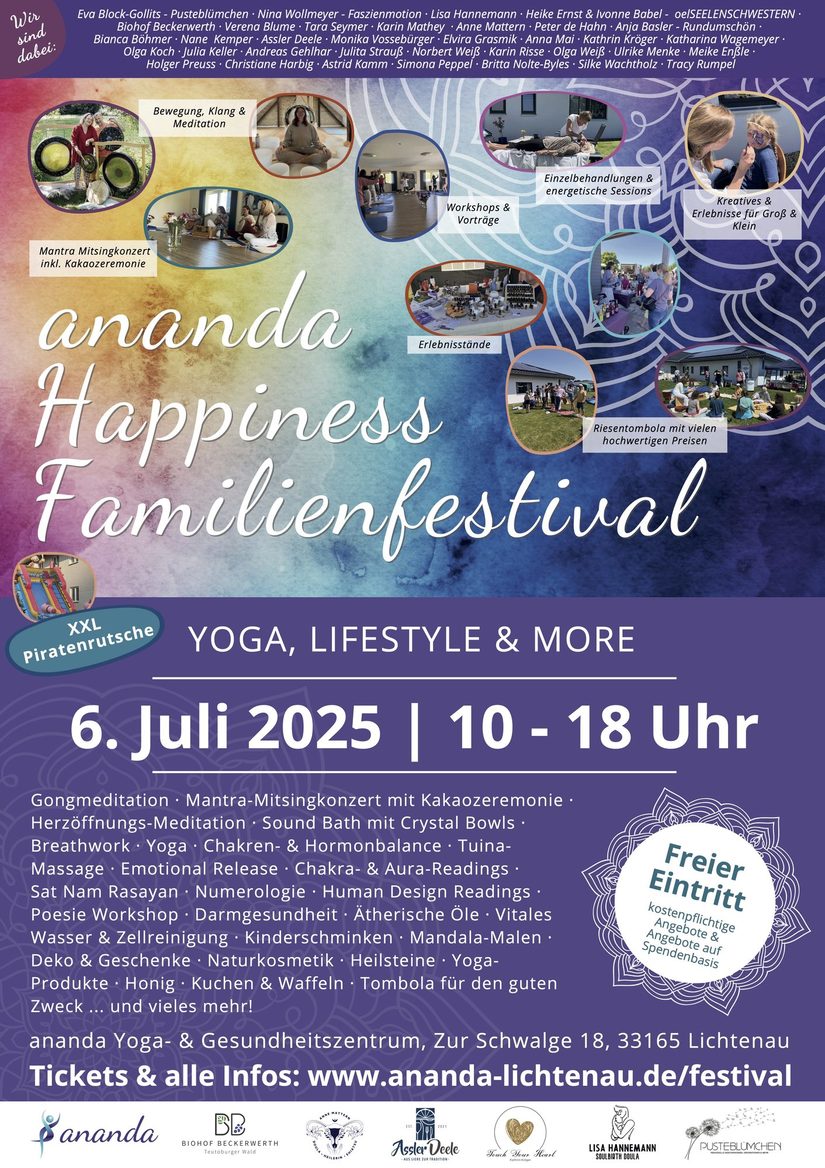 In Lichtenau feiern wir dieses Jahr das 6. Yoga-Festival im Kreis Paderborn. Das „ananda Happiness Familienfestival“ wird organisiert von Yogalehrerin und ananda Gründerin Tracy Rumpel.