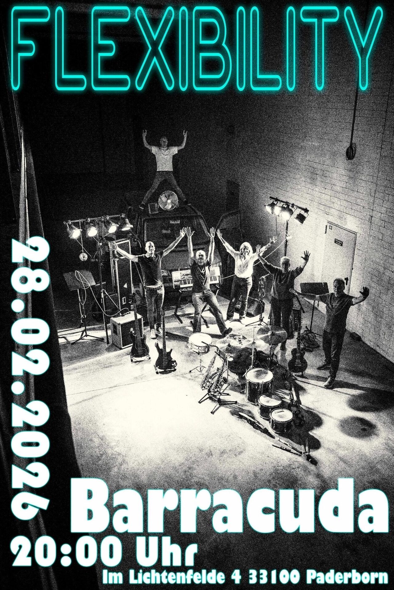 Flexibility spielt wieder im Barracuda. Die Band aus Paderborn covert Songs aus Rock und Pop und das seit mehr als 30 Jahren. Im Programm ist Altes und Neues, Lautes und Leises, Schnelles und Langsames, gut gemischt und immer tanzbar. Songs von den Foo Fighters, Amy Winehouse, Silbermond oder Pink, finde Dein Lieblingsstück, lass Dich anstecken von der Spielfreude und guten Laune der Band und mach‘ den Abend zu Deiner Party.