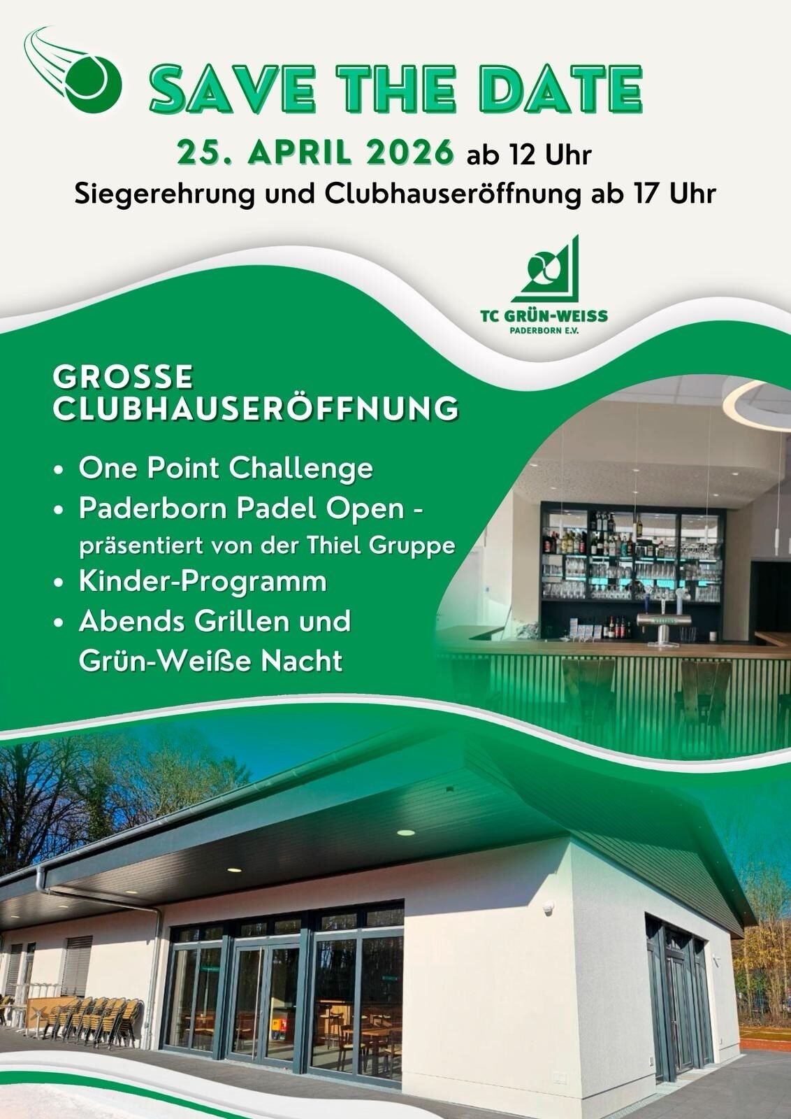 Sportliches Highlight sind die Paderborn-Padel-Open, präsentiert von der Thiel Gruppe, und die TCGW-One-Point-Challenge (12:00–17:00 Uhr), bei der jeder Punkt entscheidet. Auch externe Tennisspieler können teilnehmen.