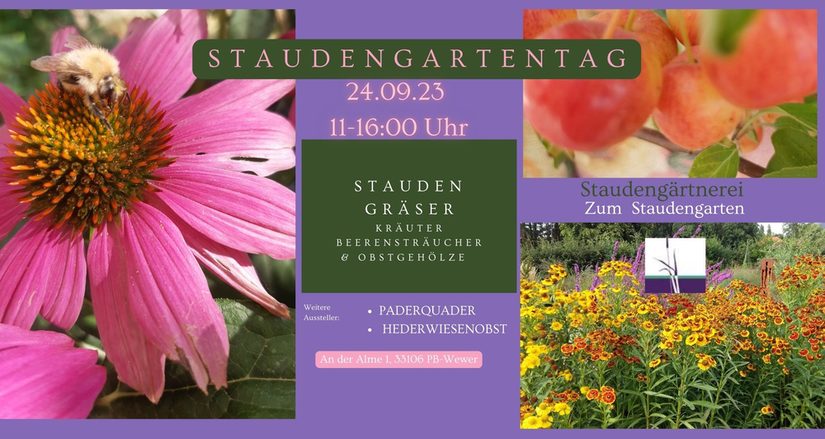 Dieses Jahr findet auch wieder ein Staudengartentag zur Herbstpflanzzeit am 24.09.2023 von 11:00-16:00 Uhr statt. Neben Stauden, Gräsern und Gehölzen aus dem Staudengarten sind auch mit dabei: