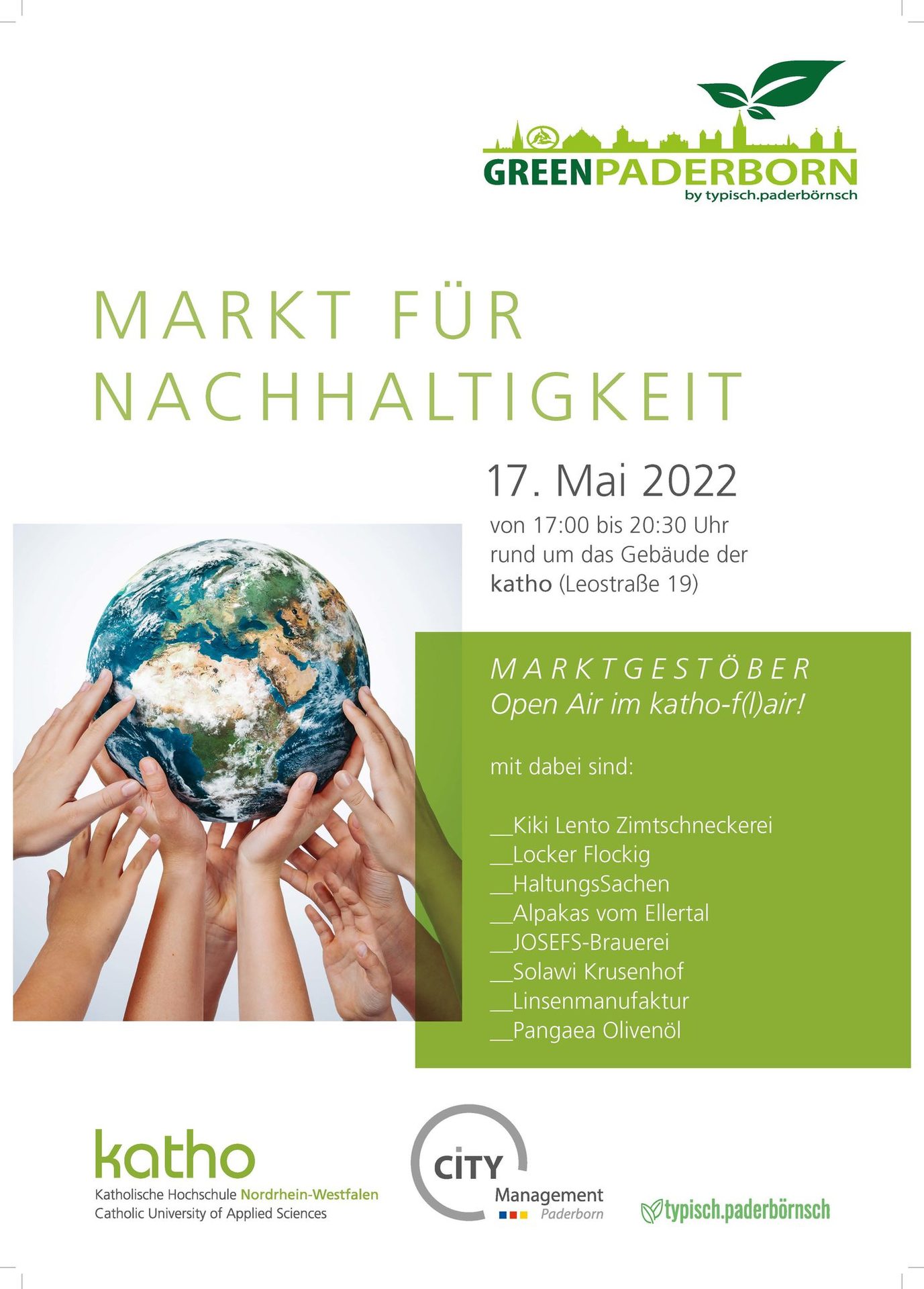 In Kooperation mit der Katholischen Hochschule Paderborn findet am 17.Mai von 17:00 bis 20:30 Uhr, zum zweiten Mal, das nachhaltige Marktevent der Initiative typisch.paderbörnsch statt. Unter diesem Namen versammeln sich innovative, nachhaltige Manufakturen, die schon jetzt auf dem Weg „Bewusst in die Zukunft“ sind und unsere Region damit bereichern. Die engagierte Initiative möchte „Brücken bauen“, um die Menschen für nachhaltiges Denken zu sensibilisieren.