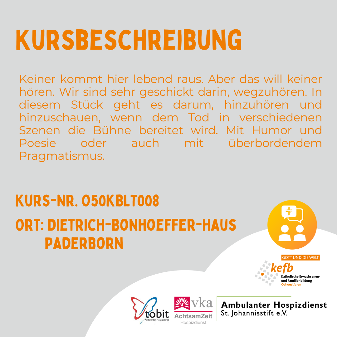 Im Rahmen des Aktionsmonats "Mitten im Leben - Abschiede gestalten" in Kooperation mit dem Ambulanten Hospizdienst Tobit, dem Ambulanten Hospizdienst St. Johannisstift e.V. und dem VKA AchtsamZeit Hospizdienst.