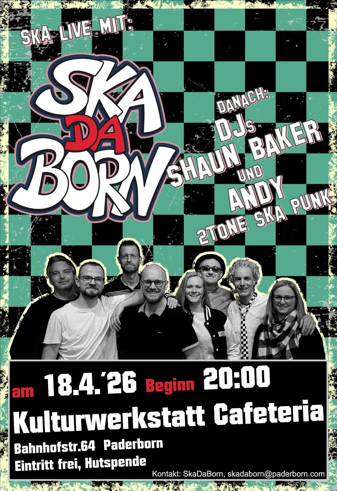 Die Paderborner Ska-Band SkaDaBorn spielt live in der Cafeteria der Kulturwerkstatt. Im Anschluss sorgen DJs Shaun Baker und Andy mit 2Tone Ska Punk für Tanzstimmung. Eintritt frei – Hutspende willkommen.
