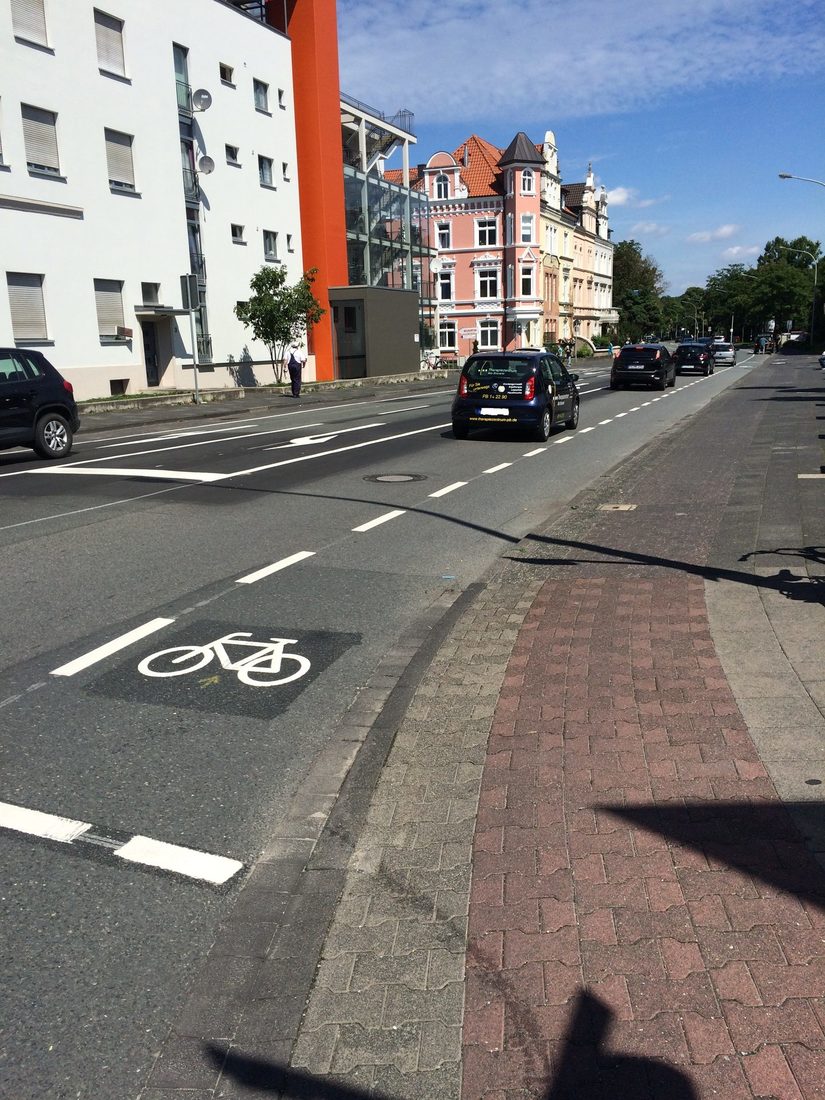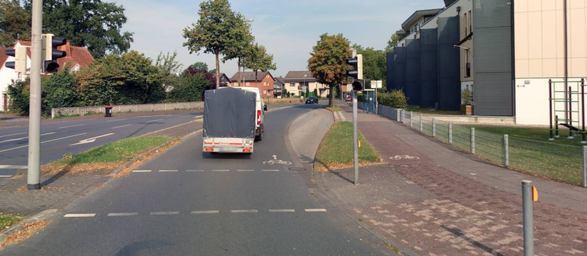 Das Halten und Parken ist auf Schutzstreifen selbstverständlich nicht erlaubt. Dort stehende Autos sorgen dafür, dass der Radverkehr auf die Fahrbahn ausweichen muss, womit andere Verkehrsteilnehmende unter Umständen nicht rechnen. Entsprechend der StVO bittet die Stadt Paderborn um gegenseitige Rücksichtnahme für ein sicheres Teilnehmen aller am Straßenverkehr.