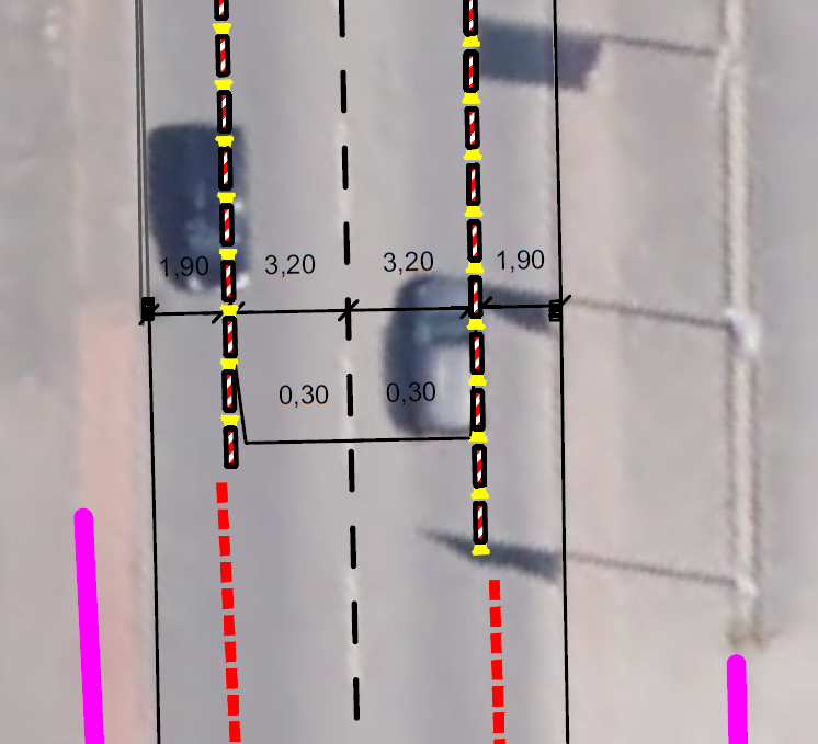 Bei den Trennelementen handelt es sich um sogenannte Leitboys, rot-weiße Baken mit einer Höhe von 68 cm, welche stadtauswärts auf 24 % der Gesamtstrecke und stadteinwärts auf 44 % der Gesamtstrecke zum Einsatz kommen.