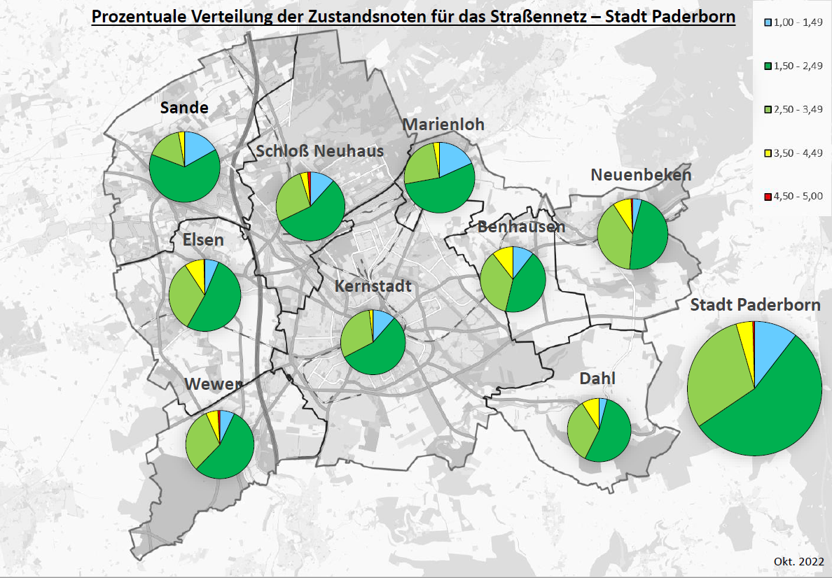 Das Vorgehen wurde bereits ausführlich unter der Zustandserfassung und –bewertung (ZEB) der Nebenflächen (Rad- und Gehwege) dargestellt, sodass im nachfolgenden Abschnitt lediglich die Ergebnisse der letzten ZEB für das Straßennetz dargestellt werden.