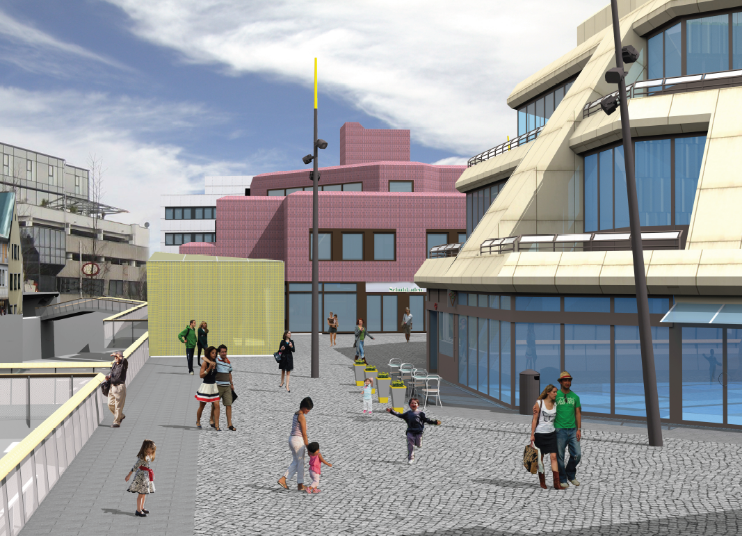 In den Gassen werden kleinere Mastleuchten eingesetzt. Die Leuchten sitzen hier auf einer Höhe von 4,5 Metern an den Masten. Überbaute Bereiche werden mit Deckenleuchten ausgeleuchtet.