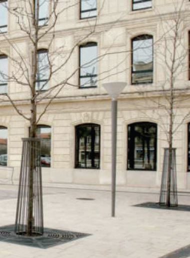 Im Bereich des Generalvikariats ist eine Reihe von Pollern geplant. Diese entsprechen mit ihrer kompakten Form und der Farbe baubronze oder anthrazit dem übrigen Mobiliar, welches hier zum Einsatz kommt.