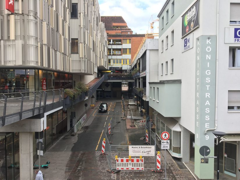 Im Rahmen der Arbeiten zur Revitalisierung des Königsquartiers wurde inzwischen das Treppenhaus in der Brückengasse sowie die Brücke über der Brückengasse zurückgebaut.