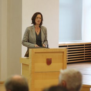 Susanne Kürpick vom Ministerium für Bauen, Wohnen, Stadtentwicklung und Verkehr stellte den Wettbewerb „StadtUmland.NRW“ vor und betonte das Interesse des Landes an interkommunaler Kooperation.