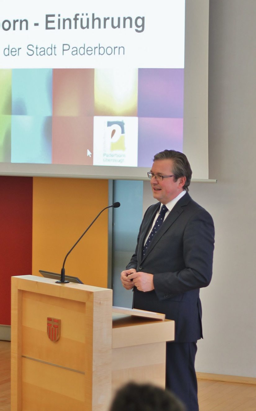 Rund 70 Vertreter umliegender Kommunen und regionaler Akteure sind am 18. November 2016 der Einladung des Paderborner Bürgermeisters Michael Dreier in den großen Sitzungssaal des historischen Rathauses der Stadt Paderborn gefolgt. Gemeinsam mit der Stadt Lippstadt, der Hansestadt Warburg und der Gemeinde Altenbeken wurde eine Informationsveranstaltung zur „Regiopolregion Paderborn“ angeboten, die den Auftakt zur Teilnahme an der zweiten Phase des Landeswettbewerbs „StadtUmland.NRW“ bildet. Im Rahmen des Wettbewerbs werden landesweit acht Modellprojekte der regionalen Kooperation mit 200.000 Euro für die Erstellung eines „Zukunftskonzeptes“ gefördert.