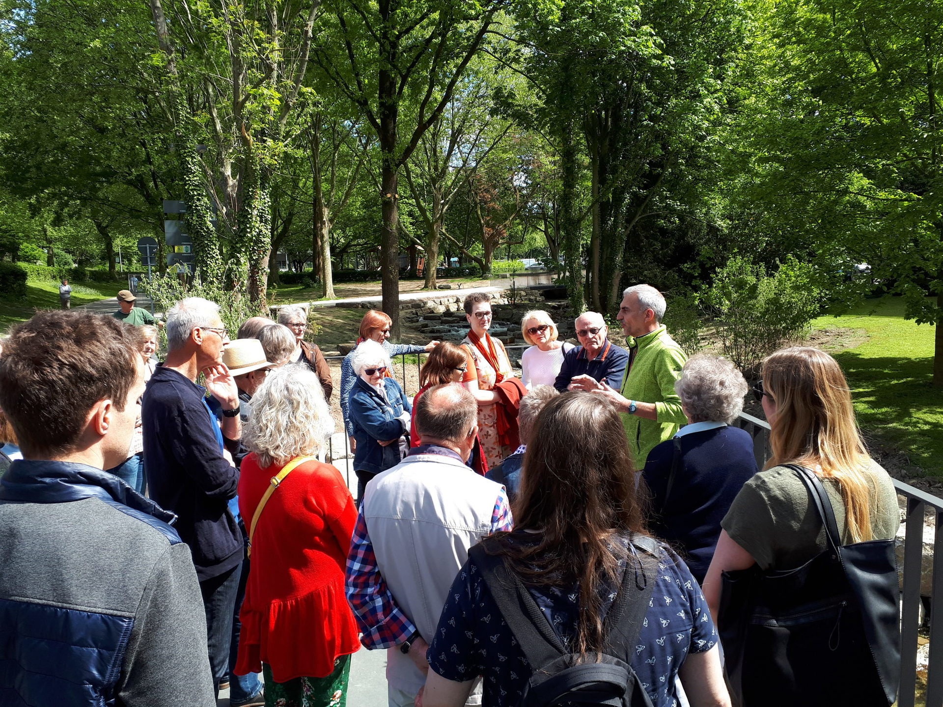 05. Mai 2018 - Am 5. Mai fand wie in jedem Jahr auch in Paderborn der Tag der Städtebauförderung statt. Es handelt sich hier um einen bundesweiten Veranstaltungstag, bei dem Kommunen die Möglichkeit haben, Projekte, die durch das Städtebauförderungsprogramm mitfinanziert werden, vorzustellen. Neben der Wasserkunst stand in diesem Jahr die Umgestaltung des Mittleren Paderquellgebietes im Fokus des Infotages. Bürgerinnen und Bürger hatten die Möglichkeit, sich durch eine kleine Ausstellung in der Paderhalle über die Planungsinhalte und den Fortgang der Arbeiten zu informieren. Nähere Infos wurden durch die Technische Beigeordnete der Stadt Paderborn, Frau Warnecke in Form einer Präsentation zu den Planungsinhalten und der Historie der Umgestaltungsmaßnahme erläutert. Zum Abschluss der Veranstaltung konnten sich die Besucher bei einer 90 minütigen Führung über die Baustelle ein Bild von den Umgestaltungsmaßnahmen direkt vor Ort machen.